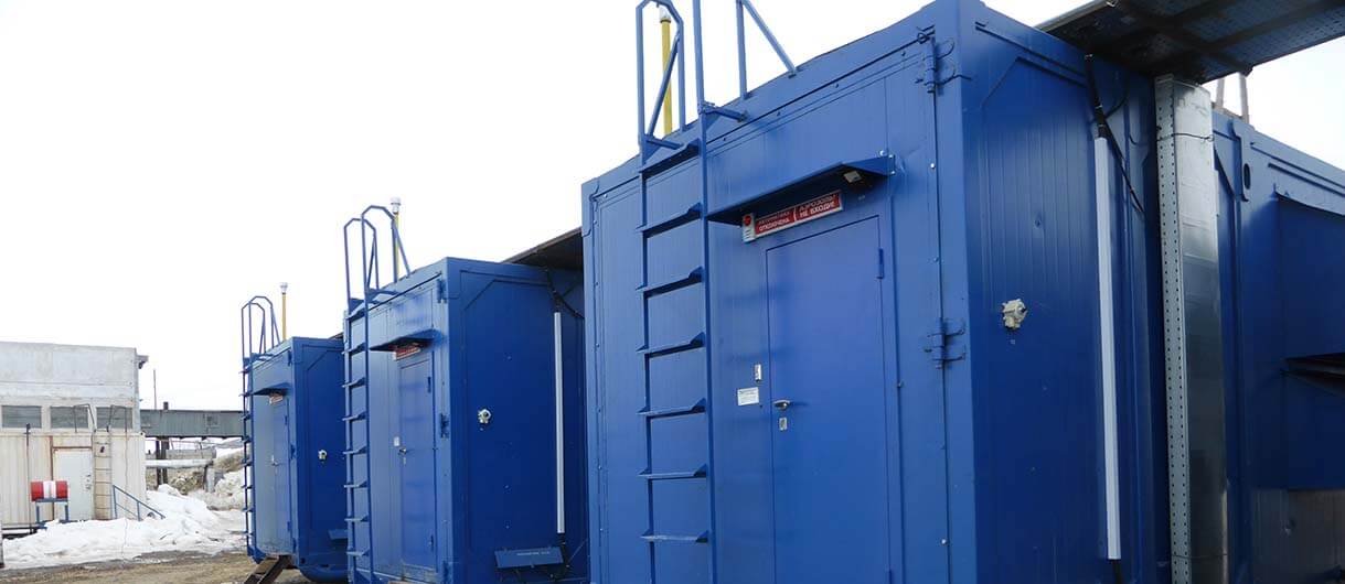 - В модульном здании или нескольких модульных зданиях, изготовленных для монтажа в них дизельных генераторов: